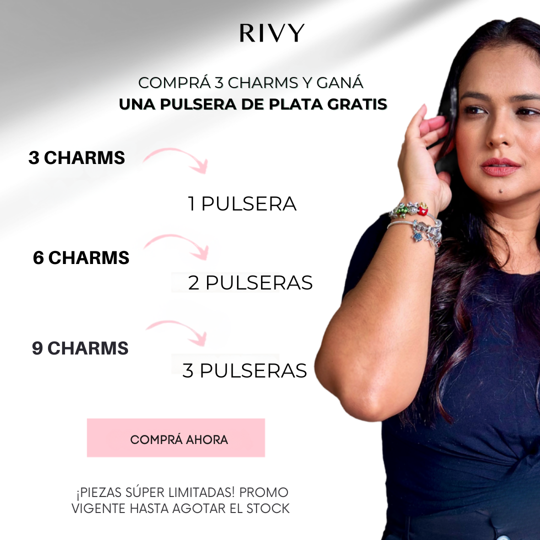 Comprando 3 charms, podés elegir una pulsera de regalo. Solo tenés que agregar los 4 productos al carrito y el descuento se aplica automáticamente.